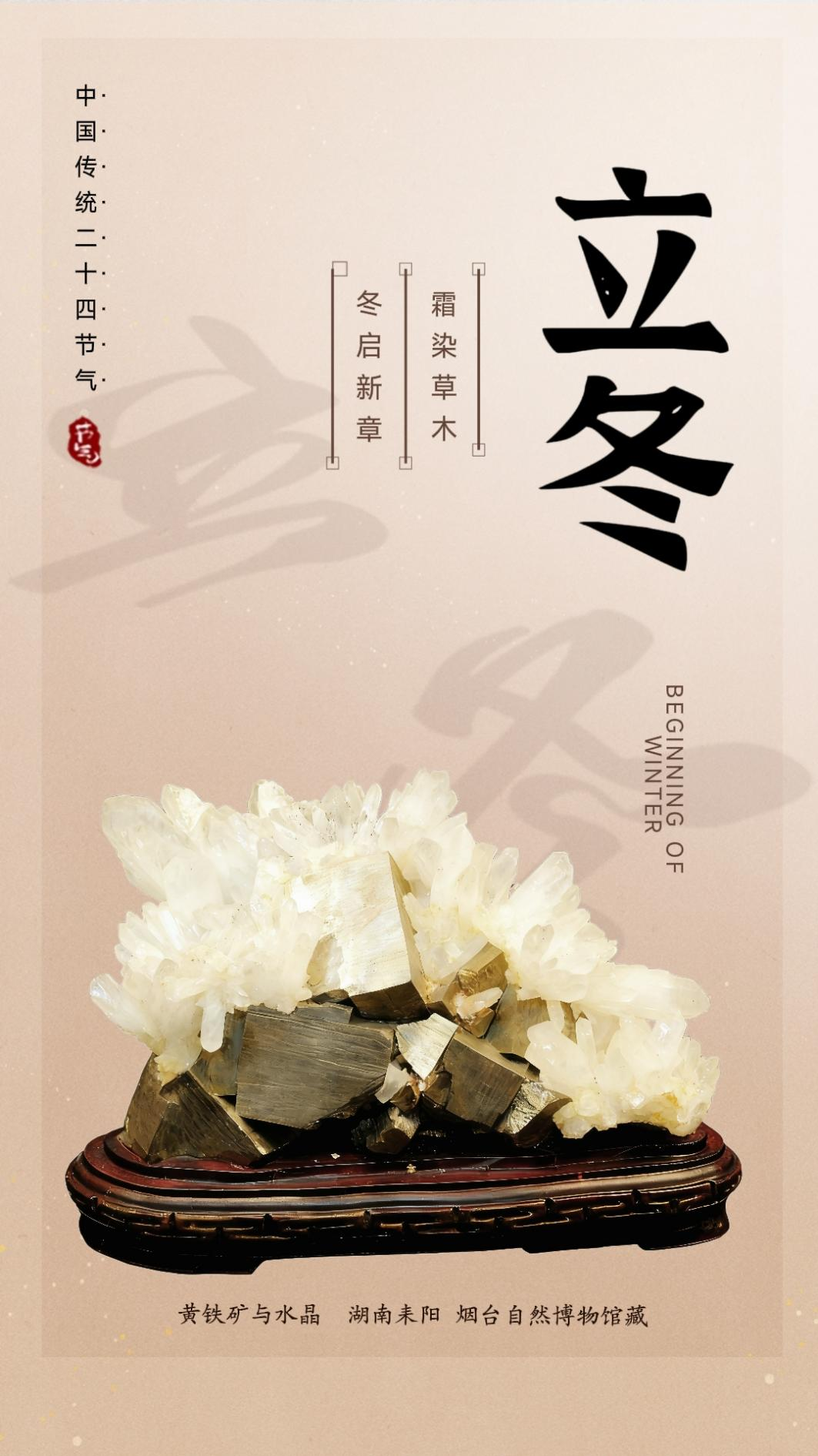 古人讲立冬分为三候:“一候水始冰,二候地始冻,三候雉入大水为蜃”。随着气温的降低,原本潺潺流动的水开始在边缘凝结成薄薄的冰层;土壤中的水分冻结,大地也在寒意的侵袭下渐渐变硬;寒冬来临,野鸡等鸟类循着温暖迁徙避寒,浅海的贝类却潜入水中越冬,此时海边的大蛤频繁出现,其外壳的纹路与颜色恰与野鸡有几分相似,古人便赋予了“野鸡潜入水中化作大蛤”的诗意解读。天地间的一切,都在这般悄然变化中,为漫长的冬季做准备。此刻,让我们走进烟台自然博物馆,寻找地质珍宝里的冬日美学。