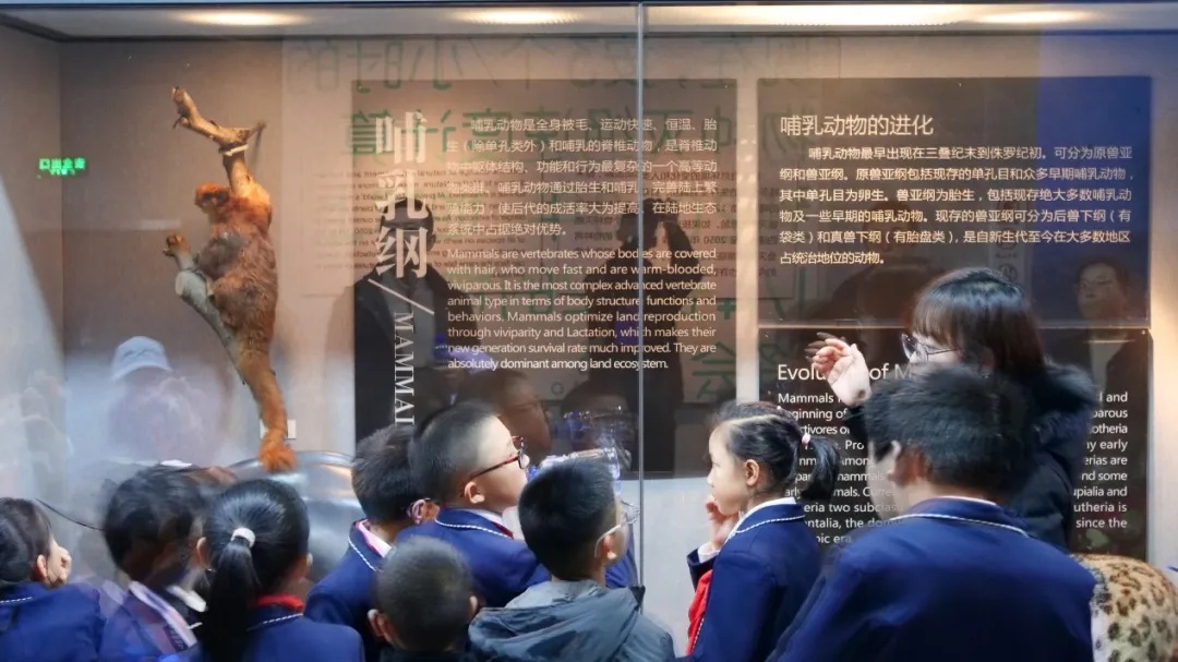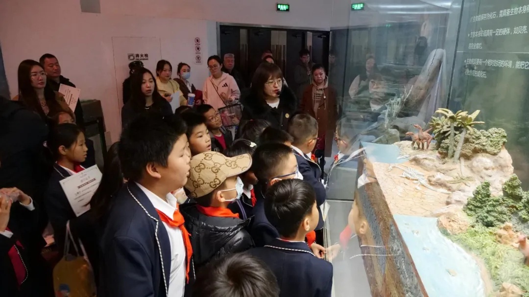 步入展厅,仿佛打开一部立体的自然史诗。地球馆中,岩层纹理镌刻着地球亿万年的沧桑变迁;化石馆内,沉睡的古生物化石无声讲述生命起源的奥秘;生物馆里,丰富的物种展示呈现自然造物的神奇多样。在专业讲解的引导下,学生们穿梭于时空长廊,在观察与思考中逐步构建起对自然演变的系统认知。