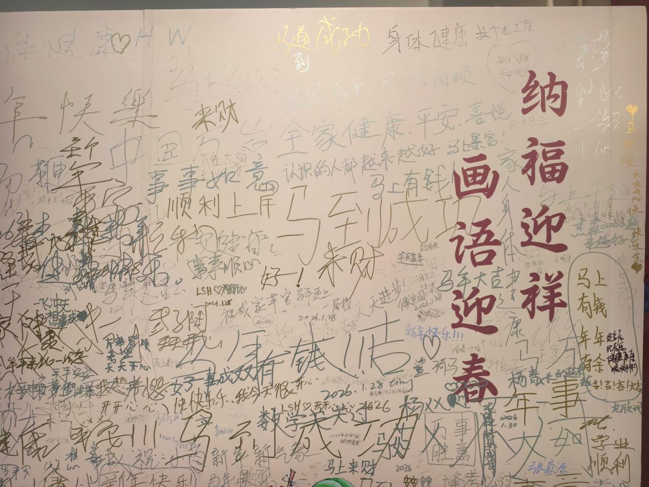 春节期间,“年画中国”展览的留言板成了展厅里最热闹的“打卡地”。展厅里的留言板被游客们的心愿写得满满当当。这里有孩子气的软萌,有少年的意气风发,更有对家国山河的深情凝望。