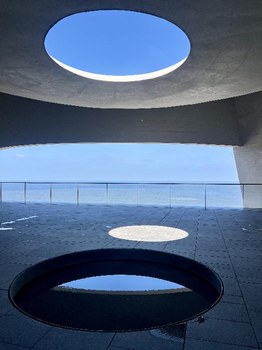 如今的时光塔,是烟台的城市会客厅,是被阳光雕刻而成的文化地标,将自然的山海风光与人文的多元功能,揉进了每一寸空间。底部的半露天剧场,总有歌声与欢笑随海风飘散,是市民休闲打卡的不二之选;2至4层的数字展厅,沉浸式艺术展让时光有了别样的表达;5至6层的观海平台,凭栏远眺,山海相依的烟台风光尽收眼底;7层的空中图书馆,低头是墨香,抬头是碧海,让阅读与山海撞个满怀;顶层的现象空间,透过圆孔望出去,烟台山、福莱山等十处景观错落有致,自然的光影与城市的轮廓,在此刻交融成画。