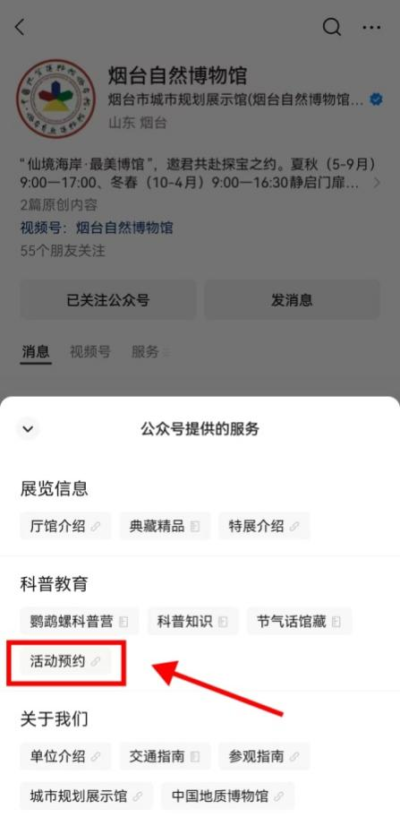 报名方式:请点击“烟台自然博物馆”公众号菜单栏“科普教育”版块中的“活动预约”或点击“公众号提供的服务”中的“活动预约”进行报名,报满即止,活动免费。